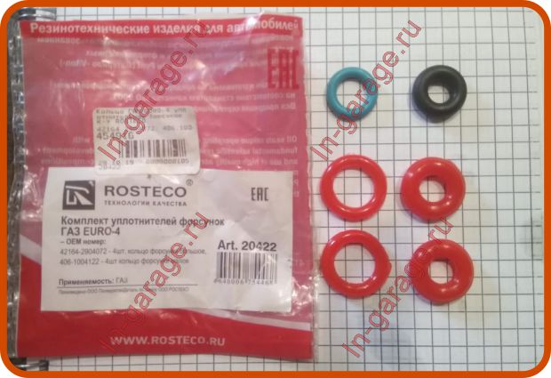 Рядовая чистка снятых с автомобиля форсунок распределенного впрыска обернулась забавным моментом. Клиент предоставил резиновые уплотнительные кольца на форсунки самостоятельно. С первого взгляда комплект уплотнительных колец для форсунок вызвал подозрение на предмет устойчивости к бензину. Нам был предоставлен клиентом комплект уплотнителей форсунок ГАЗ EURO-4 компании ROSTECO, артикул 20422.