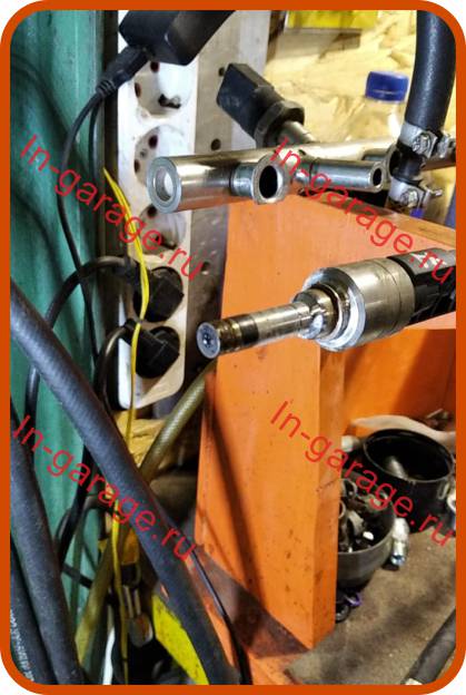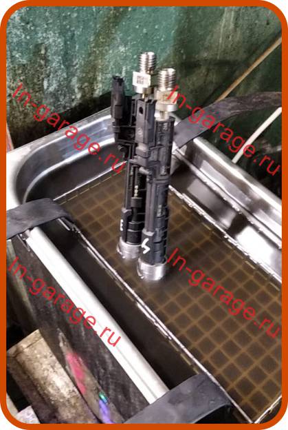 Инжекторы были заблаговременно сняты с топливной рампы и готовы к процедуре очистки.