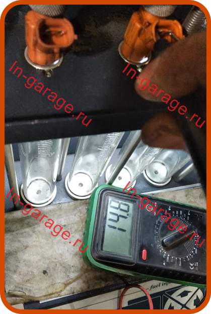 Измеряем сопротивление топливных распылителей. Первичный тест на сопротивление катушек показал нормальный результат.