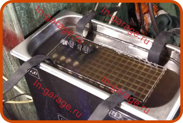 После тестирования отправили форсунки для чистки в ультразвуковую ванну для удаления следов лаковых отложений и грязи. Приводим в действие кавитационный принцип- очищаем распылители с помощью потока воздушных пузырьков, благодаря чему промываются каналы и сетчатый фильтр.