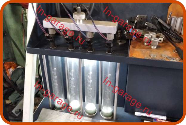 На диагностическом стенде проверяем работу инжекторов имитируя их работу в разных режимах.