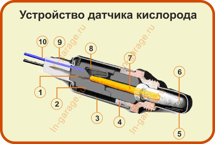 На картинке изображено устройство лямбда зонда (кислородного датчика):